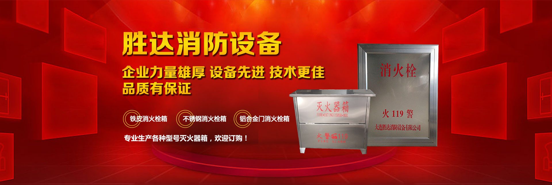 大連勝達(dá)消防設(shè)備有限公司本公司企業(yè)力量雄厚、設(shè)備先進(jìn),生產(chǎn)的所有消防產(chǎn)品均符合國(guó)家GB14561—J標(biāo)準(zhǔn),品質(zhì)有保證。我公司地理位置優(yōu)越,位于大連市甘井子區(qū)西北路847號(hào)交通便捷,公司專(zhuān)業(yè)生產(chǎn)各種型號(hào)滅火器箱、消火栓箱、鐵皮消火栓箱、不銹鋼消火栓箱、鋁合金門(mén)消火栓箱。消火栓箱系列產(chǎn)品,全部按照國(guó)家標(biāo)準(zhǔn)和行業(yè)標(biāo)準(zhǔn)進(jìn)行生產(chǎn),并通過(guò)國(guó)家合格鑒定,得到了國(guó)家固定滅火系統(tǒng)和耐火構(gòu)件質(zhì)量監(jiān)督檢驗(yàn)中心的產(chǎn)品認(rèn)證和產(chǎn)品形式報(bào)告書(shū)。我們的消火栓箱系列產(chǎn)品具有外形美觀、結(jié)構(gòu)先進(jìn)、開(kāi)啟靈活、使用可靠、消火應(yīng)急燈具標(biāo)志清晰、光色好、功耗低、使用壽命長(zhǎng)、安裝使用簡(jiǎn)便,可廣泛應(yīng)用于高層建筑和工業(yè)等一些公關(guān)場(chǎng)所使用。